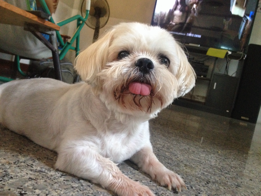 น้องหมาเป็นสุนัขพันธุ์ชิสุผสม อายุ 17 ปี เป็นอัลไซน์เมอร์ ตามองไม่เห็น หูไม่ได้ยิน ไม่สามารถลุกยืนด้วยตัวเองได้ น้องมีอาการร้องเสียงดังมากจนข้างบ้านมาถาม แต่ยังโชคดีค่ะ ที่บ้านเราเป็นทาวน์เฮ้าส์หลังมุ
