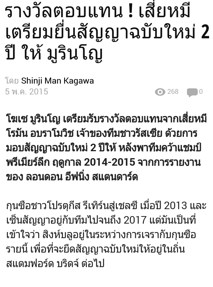 เชลซี เตรียมยื่นสัญญาฉบับใหม่ 2 ปี มูริญโญ่ หลังพาทีมคว้าดับเบิ้ลแชมป์