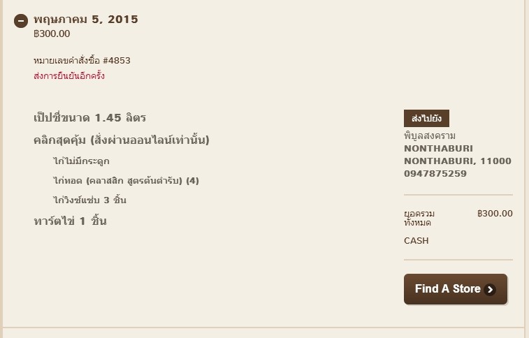 05/05/58 ประมาณสามทุ่มกว่าๆ ผมสั้งไก่ทอดล่วงหน้า ให้จัดส่งให้วันที่