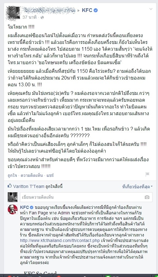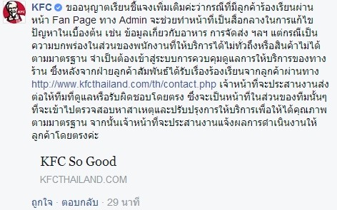 06/05/58 12.59 น. แจ้งเรื่องเข้าไปที่หน้าเพจเคเอฟซี
