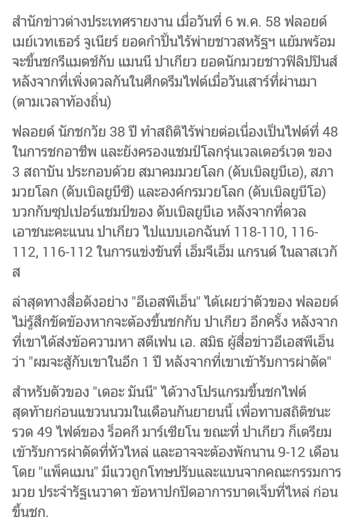 ปาเกียว สุดงง..!! แพ้"ฟลอยด์"ได้อย่างไร เชื่อตนเองชกดีกว่า..สมควรชนะมากกว่า!!