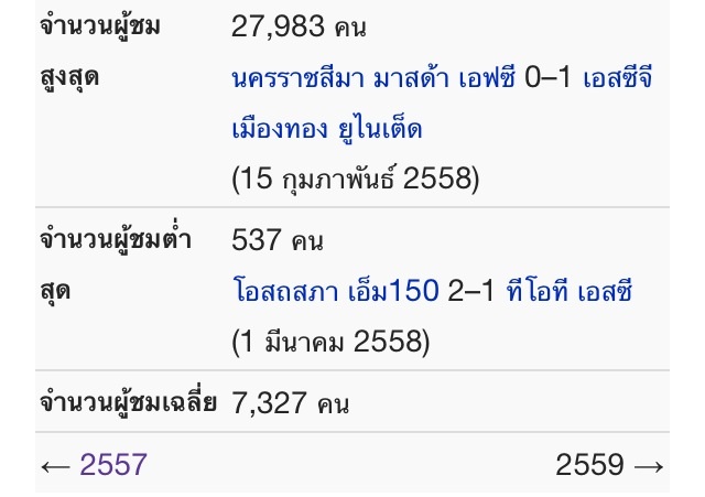 แล้วเมื่อเอาลีกเรากับลีกเค้ามาเปรียบเทียบกันสิ่งที่ลีกเราเริ่มจะไล่ๆเคลีกมานอกจากค่าจ้างแล้วก็น่าจะเป็นจำนวนคนดูที่เริ่มขยับเข้าใกล้ของเค้ามากขึ้น ก็หวังว่าต่อไปไทยพรีเมียร์ลีกจะพัฒนาในทุกๆด้านเทียบเคียงเค้าขึ้นไปอีก