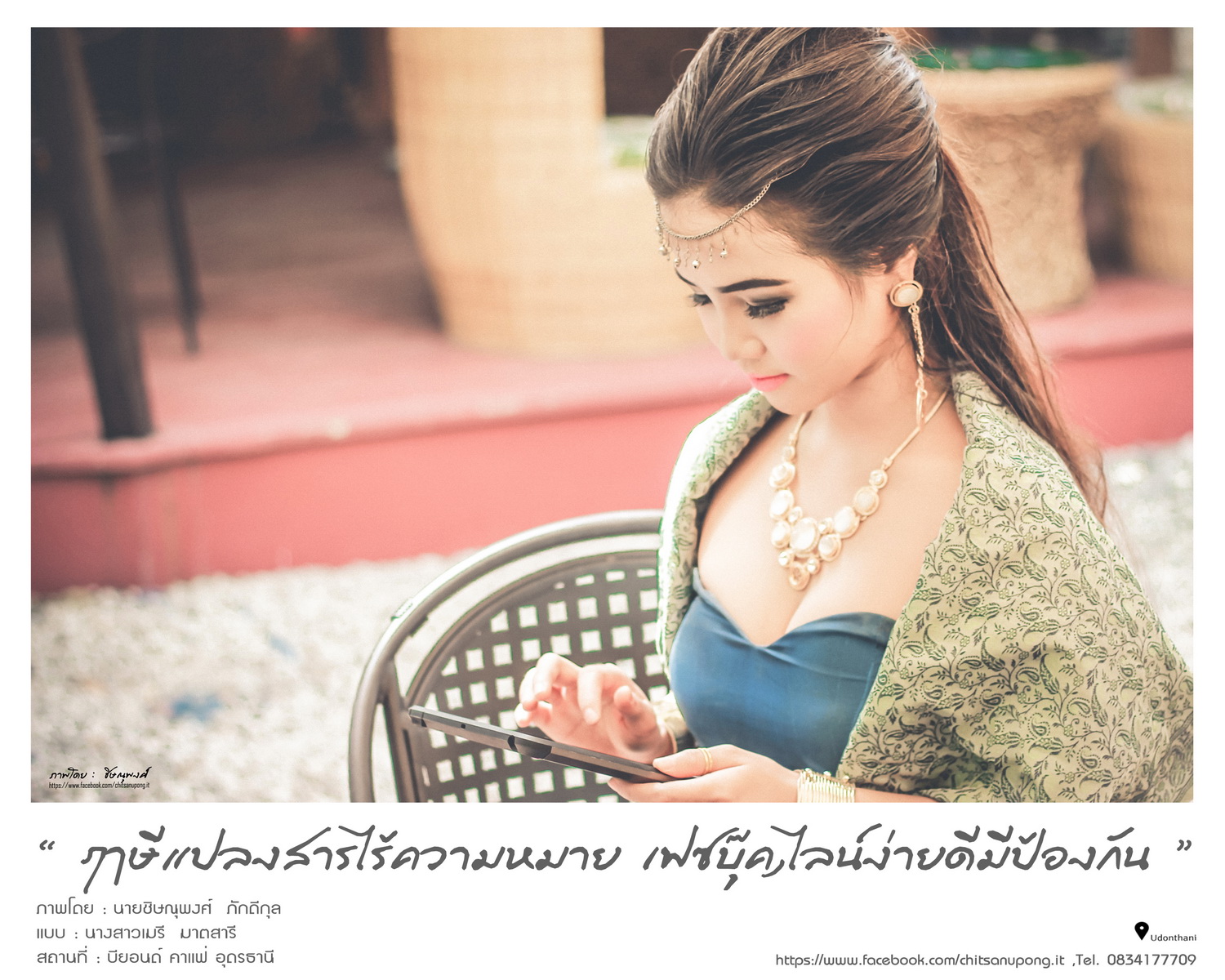 ด้วยความคิดที่ว่านี้หลังจากได้คอนเซปต์กับสถานที่ถ่ายรูปให้น้องนางแบบเป็นธีมหลักแล้วผมเลยขอน้องนอกรอบว่า จะเป็นอย่างไรถ้าเราเอาความเป็นไทยที่เราประดิษฐขึ้น ไม่ว่าจะเป็นชุดผ้าไหมที่น้องตัดเอง, ร่ม(จ้อง)จากเชียงใหม่,ผ้าคลุมไหล่ของฝากจากอินเดีย,รองเท้าจากห้าง(หรือเปล่า?) เอามาเข้ากับวิถีชีวิตของวัยรุ่นไทยในต่างจังหวัด ที่ทำๆกันอยู่เป็นกิจวัตร ไม่ว่าจะนั่งมอเตอร์ไซค์ ไปนั่งชิวๆ ตามร้านกาแฟ(แก้วล่ะ 50-60บาท),เซลฟี่,เล่นเน็ต,สะพายอูคูเลเล่ฯ ดูสิว่าความแตกต่างและไม่เข้ากันทั้งหมดเหล่านี้ เมื่อมาอยู่ด้วยกัน มันจะกลมกลืนและขัดกันมากน้อยสักแค่ไหน พร้อมทั้งปรับโทนสีให้ออกแนวที่วัยรุ่นในปัจจุบันนิยมกัน แทนที่จะทำแบบ Dramatic,หรือตกแต่งแบบภาพในจินตนาการ ซึ่งโดยส่วนตัวแล้วผมพอใจในระดับนึงที่ได้ทำคอนเซปต์นี้ออกมา อาจจะไม่ได้ดีที่สุดเพราะขีดจำกัดของความสามารถของผมเอง,อุปกรณ์,สถานที่,เวลา (ความจริงอยากได้ รถเมล์,ห้าง,วินมอเตอร์ไซค์ด้วยแต่ไม่สะดวก) อย่างน้อยผมได้สื่อในสิ่งที่อยากนำเสนอ