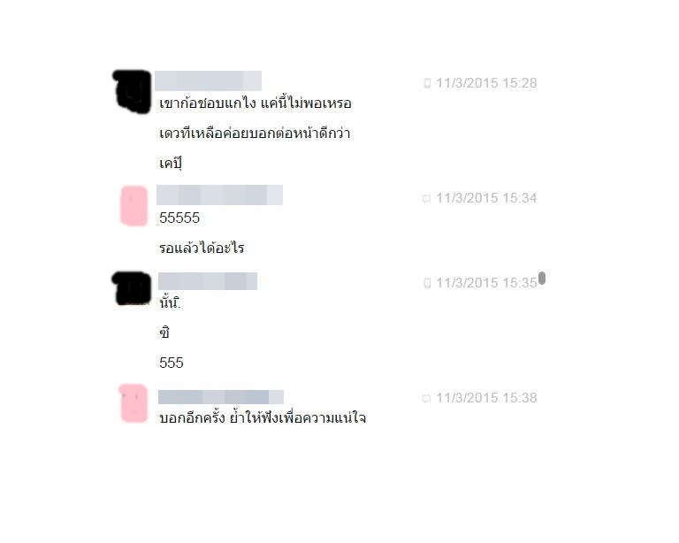 ต่อมาก็คุยกันปกติทุกอย่าง จนเกิดเรื่องทะเลาะกันแรงมาก คือเราแรงอยู่ฝ่ายเดียว ด่าแบบขึ้นกูขึ้นทั้งๆที่ไม่เคยพูดมาก่อน แต่คนนั้นก็ไม่ได้ด่ากลับสักนิดบอกเหตุผลทุกอย่าง แล้วยังง้อขอโทษเราอีก แค่เรื่องโทรไปตัดสายทิ้งหลายรอบมากอ่ะใครๆก็ต้องโกดป่ะ รับสายบอกหน่อยก็ยังดีว่าไม่ว่างอ่ะ จนเรางอลไม่คุยด้วยวันนึง แต่พอเข้าวันใหม่เราก็หายโกดหายงอลก็ตอบกลับคนนั้นไป แต่ก็คุยแบบนิ่งๆ อยากเล่นตัวหน่อยอยากให้เขาง้ออีก55555+ โกดง่ายหายเร็ว ใครมาทำไรให้นิดให้หน่อยพูดง้อบ่อยๆก็หายล้ะ แต่คนนี้เป็นประเภทที่ว่าขอโทษไปแล้ว ถ้าจะไม่คุยก็ตามใจล้ะกัน เพราะขอโทษไปหมดแล้ว เราเลยคิดว่าอะไรว้ะไม่ง้อกุหน่อยหรออีกนิดนึงก็ยังดี นะๆๆๆๆ5555 แต่เราก็ต้องรีบทำเป็นหายงอล คุยปกติเหมือนไม่มีไร ความรักแบบเด็กๆเนอะว่าป้ะ งอลๆง้อๆกัน ก็งี้แหละไม่มีใครให้งอลก็มีอยู่คนเดียว ทำเหมือนเป็นแฟนกันทุกอย่างแต่ไม่ใช่แฟนเพราะไม่ได้คบกัน จะว่าอยู่ในฐานะคนรู้ใจก็ได้นะ