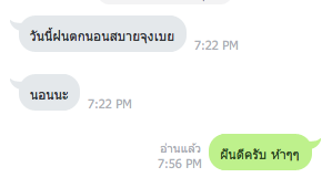 คุยเสร็จผมยังนั่งนึกแล้วขำในใจ ถึงขนาดต้องโทรมาเลยหรอ ยิ่งช่วงนี้เพิ่งเล่นไลน์เป็น นานๆทีจะทักมาเพราะกลัวผมไม่ว่างตอบ แต่ส่งมาทีก็จะประมาณนี้