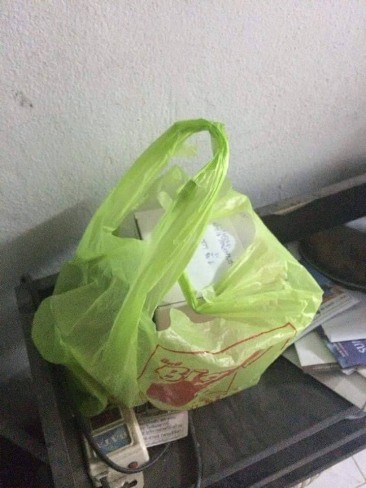จนกระทั่งเมื่อวานราวๆ 3 ทุ่มค่ะ เรากับพี่กลับมาที่ห้อง แล้วก็พบว่ามีถุงใบหนึ่งวางอยู่หน้าห้องพี่เรา ข้างในเป็นกล่องมีโน้ตแปะไว้