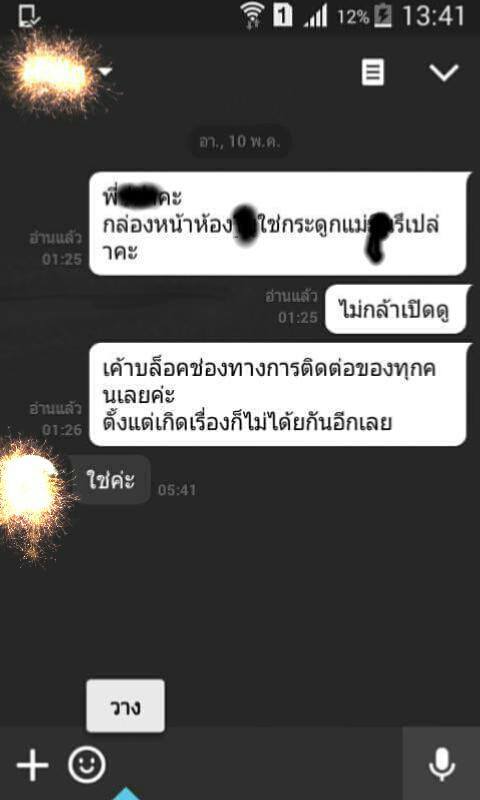 ทีนี้พี่เจ้าของห้องก็ไลน์มาคุยกับพี่เราว่า ได้ทำการล็อคห้องไว้แล้ว เพราะในเมื่อ ม ไม่มีเงินจ่าย ก็ต้องย้ายออก ประเด็นคือ ม หนีหายไปค่ะ