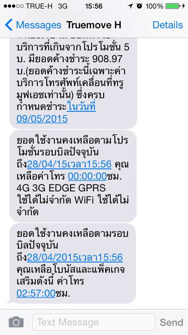 2. ผมเป็นคนที่ไม่ถนัดการตรวจสอบยอดการใช้งานทาง sms ในเมื่อ True มีแอพพลิเคชั่นให้ใช้งาน ผมมีสมาร์ทโฟน ผมก้อยากใช้งานนะ แต่ I-Service ของ True เป็นแอพพลิเคชั่นที่แย่มากๆ แนะนำทางผู้พัฒนา ก่อนจะปล่อยแอพพลิเคชั่นให้ลูกค้าใช้ ควรทดสอบการใช้งานก่อนดีมั้ย คือ ข้อมูลก็ไม่ตรงตามความเป็นจริง แบบ error เยอะมาก test beta ก่อนเนอะ ก่อนปล่อยให้ใช้งาน อันนี้คืออยากให้ปรับปรุงแก้ไขโดยด่วนเลย