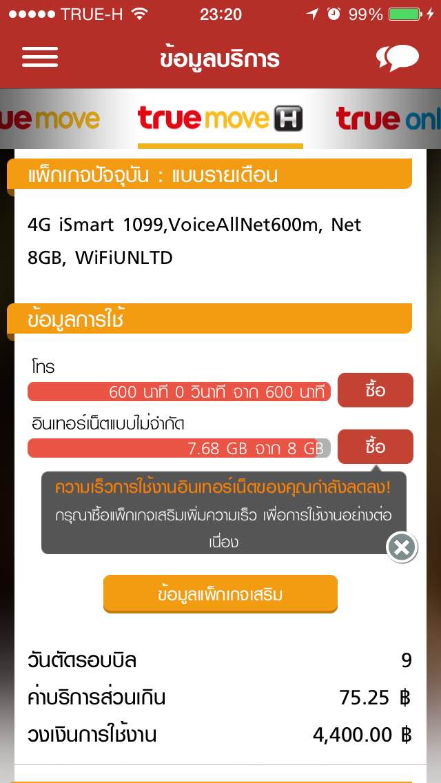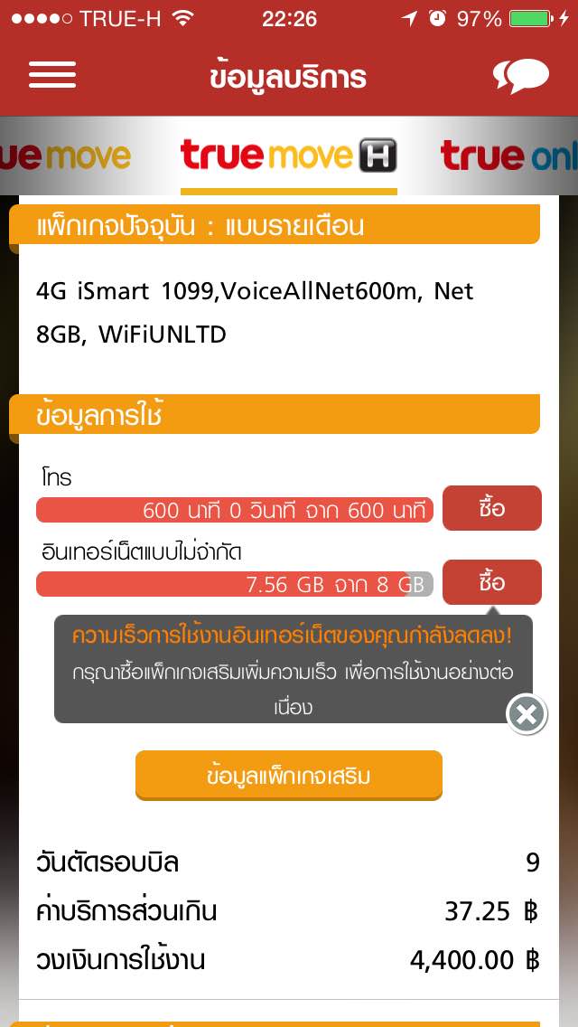 ใครเคยเจอปัญหาการใช้งานแพ็คเกจเสริมการโทรของ TRUE MOVE H แบบนี้บ้างครับ
