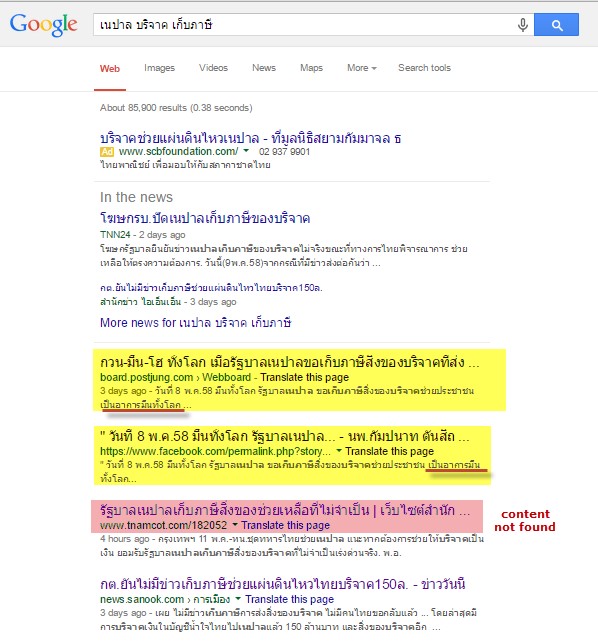 เราสงสัยมากจึงเสิร์ช Google ด้วย Keyword ที่เกี่ยวข้อง พบผลการค้นหามีข่าวที่มาจากแหล่งเดียวกันทั้งหมดคือ Page นี้แหละ -,,-
