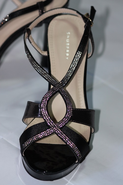 วัสดุจากหนัง PU ด้านหน้าสายคาดประดับด้วยคริลตัล พร้อมสายรัดข้อเท้าปรับระดับได้ ขายราคา 600