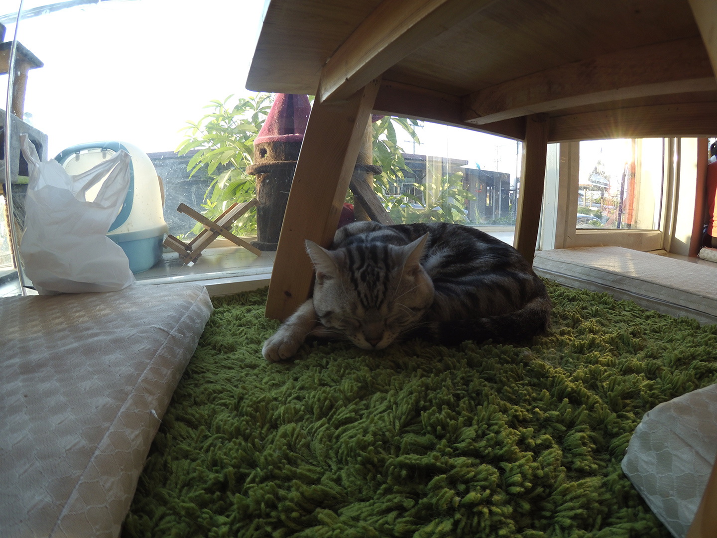 มาถึงที่ร้านแล้วครับ มาเจอกับเจ้าตัวนี้ก่อนเลย หลับสบายอยู่ใต้โต๊ะ