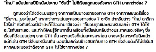 คิดยังไงกับข่าวที่ว่า "ใหม่ ดาวิกา" ดังจาก GTH มากกว่าช่อง7