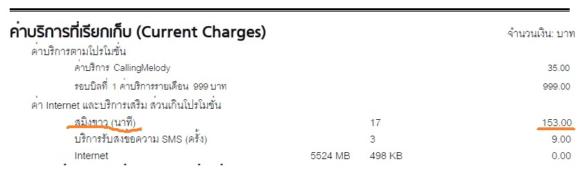 เดือนนี้ จู่ๆ ก้อมีค่าบริการ สมิงขาว 17 นาที 153 บาท ขึ้นมา