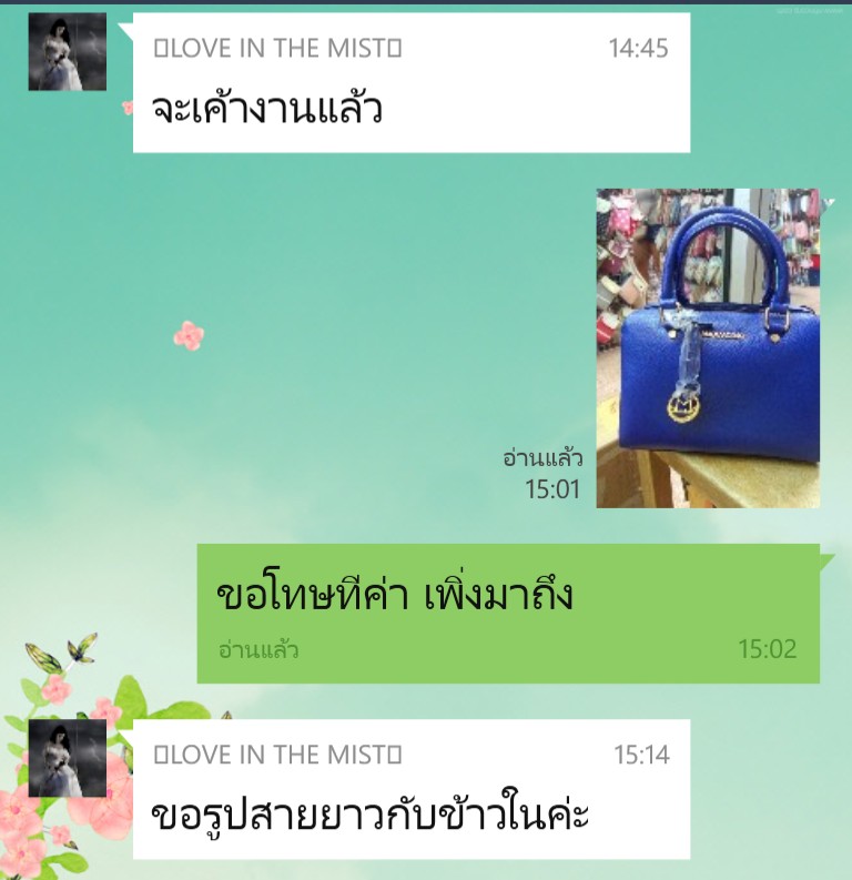 พอดีเป็นแม่ค้ามือใหม่ เจอลูกค้าเคสนี้เสียความรู้สึกมาก เราตั้งใจบริการทุกอย่างแต่รู้สึกเหมือนถูกลูกค้าหลอกถาม โกรธด้วย แต่ก็ไม่ได้ว่าอะไรเค้า แต่ก็สงสัยด้วย ว่าเค้าเร่งถาม ขอรูป ต่างๆนาๆ ไปเพื่ออะไร ต่อราคา ก็ลดให้ พอถามไปอ่านแต่ไม่ตอบ ไม่เอาก็น่าจะบอกกันดีๆ คนพวกนี้เค้าต้องการสืบอะไรคะ ใครมีประสบการณ์ ช่วยแนะนำด้วยนะคะ
