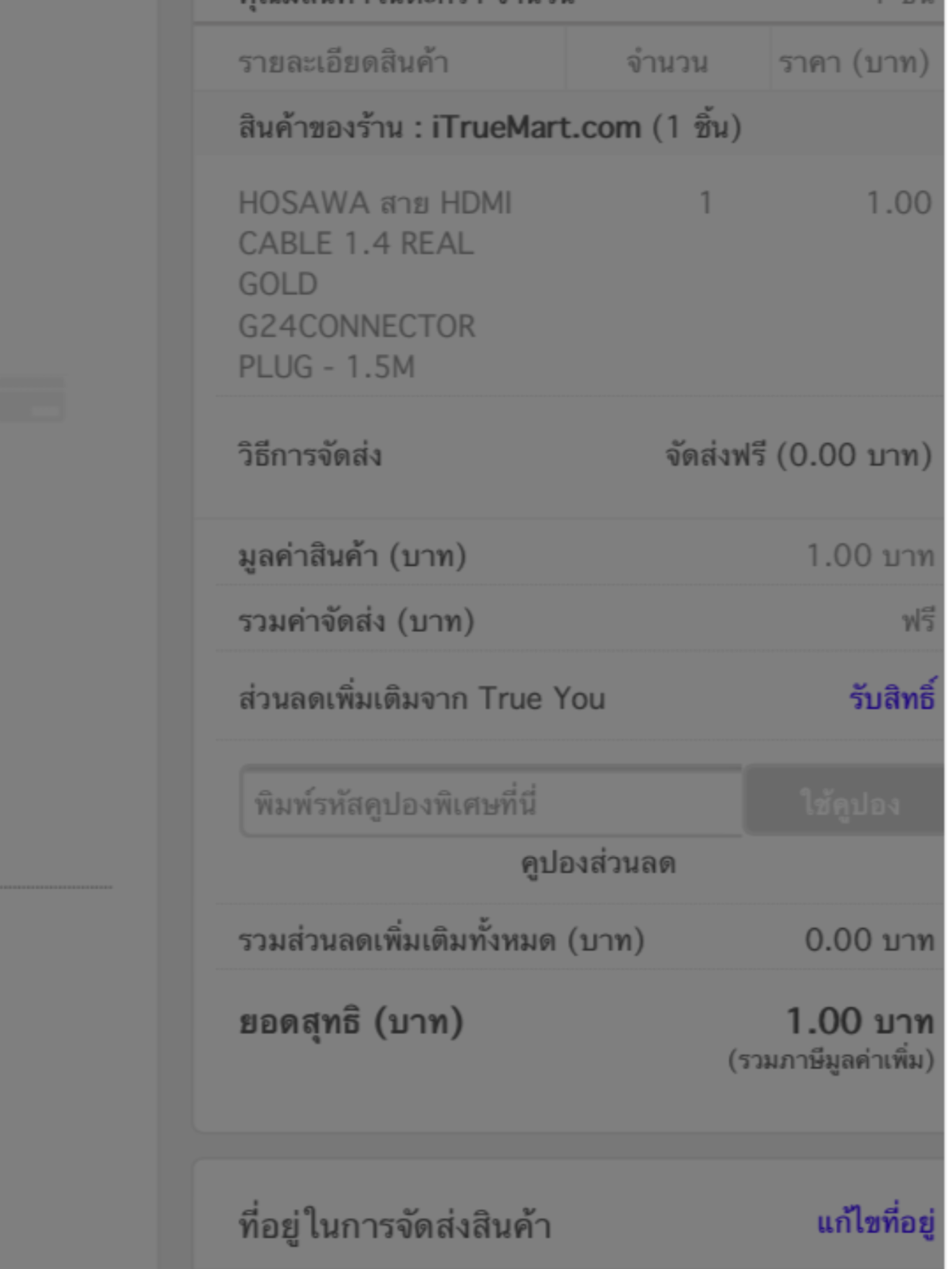 พอกดสั่งของขึ้นให้จ่ายราคา 1 บาท ด้านขวา