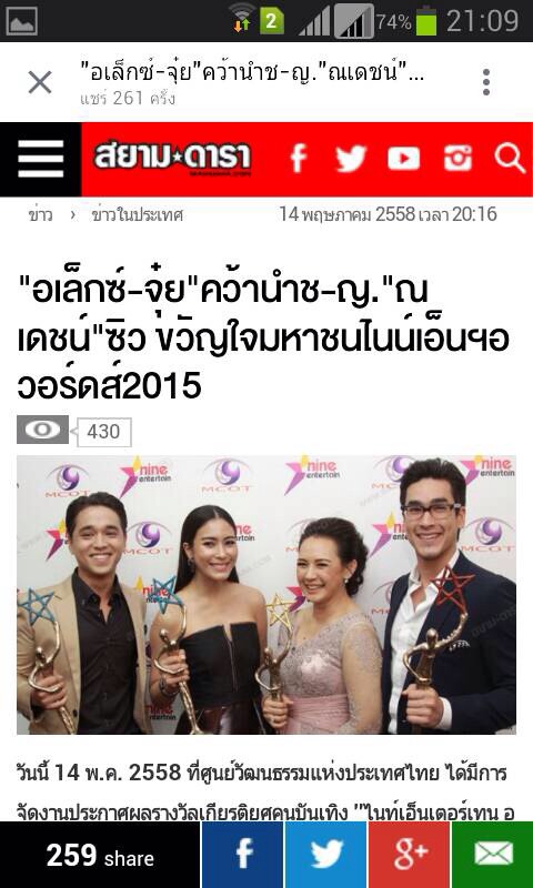 ยินดีกับทุกรางวัลในไนน์เอนเตอร์เทนด้วยค่ะ และยินดีที่สุดคือ ณเดชน์ คูกิมิยะ 👏👏👏👏👏
