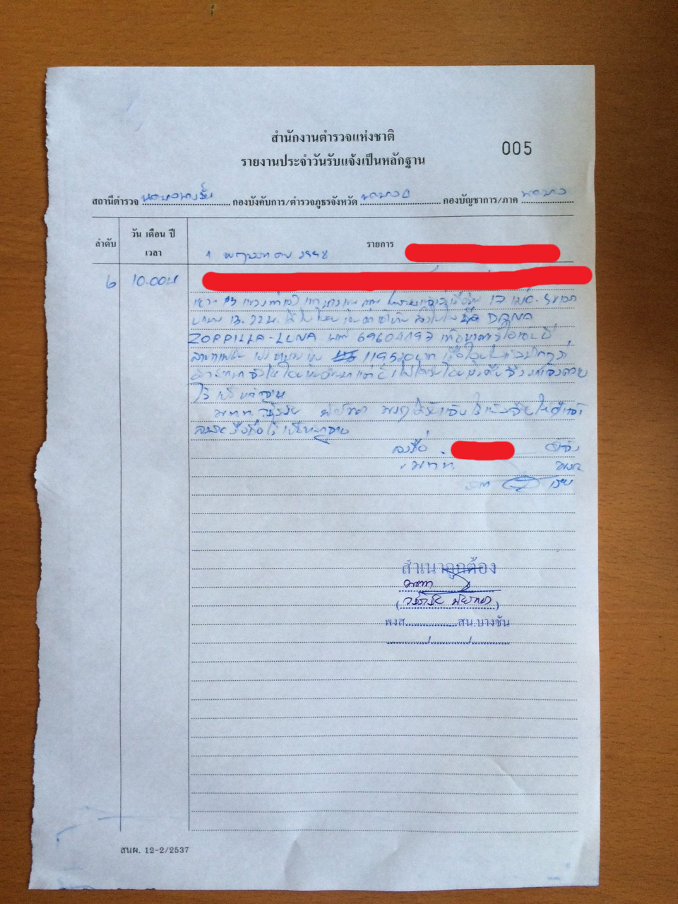 วันที่ 1 พฤษภาคม 2015 (วันรุ่งขึ้น) เราเลยรีบไปแจ้งความลงบันทึกประจำวันเป็นหลักฐานไว้และส่งเมลไปหามันอีก