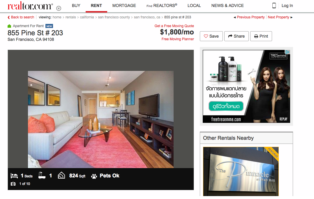 ที่อยู่อพาร์ทเม้นท์ : 855 Pine St #203 San Francisco, California 94108