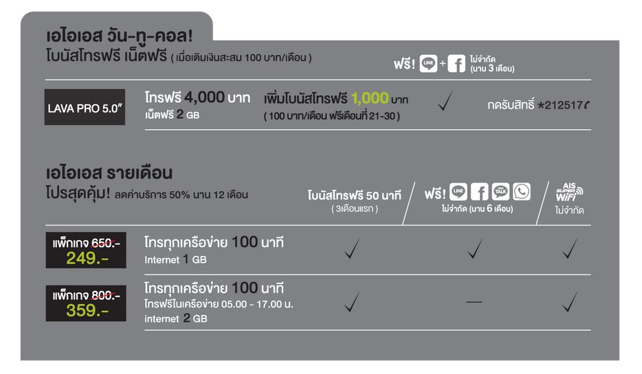 สอบถามเอไอเอสค่ะ โปรโมชัน AIS LAVA PRO 5.0