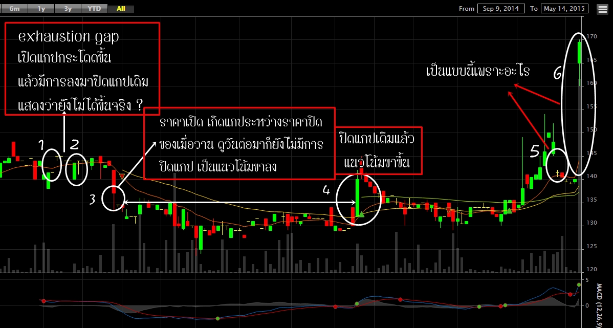 จุดที่ 5 ราคาเปิด เกิดช่องว่าง GAP ของราคาปิดเมื่อวาน แล้วราคาเปิดเมื่อวาน (14 พ.ค.58) ก็กระโดดเปิดช่องว่างไปอีก กลายเป็นตอนนี้มีช่องว่างทั้งสองช่วง แต่เมื่อวานราคาเปิดกระโดดสูงเกิน วอลุ่ม เยอะมากก อยากรู้ว่าแบบนี้คือเจ้าเข้า หรือมีข่าวดีอะไร เพราะจากที่ดูข่าวแล้วก็ไม่มีอะไรเกิดขึ้น หรือเพราะจะมีการจ่ายปันผลวันที่ 26 ยังไงรบกวนผู้รู้แนะแนวทางให้หน่อย มือใหม่จร้าา