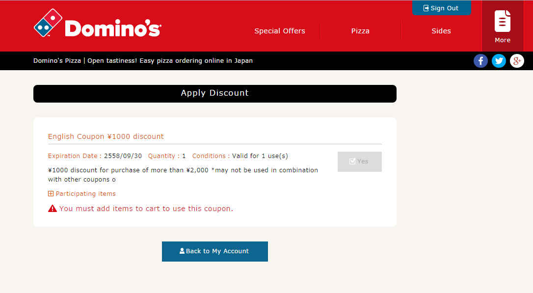 - ต้องมี Account ของร้าน Domino Pizza ญี่ปุ่น
