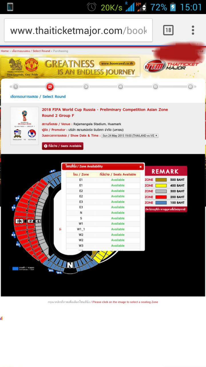 ฟุตบอลโลกรอบคัดเลือก โซนเอเชีย ไทย - เวียดนาม เปิดขายตั๋ว 15 พ.ค 58 ตั้งแต่เวลา 10.00 น. ทาง thaiticketmajor ราคาบัตร 100 - 200 - 300 - 400 - 500