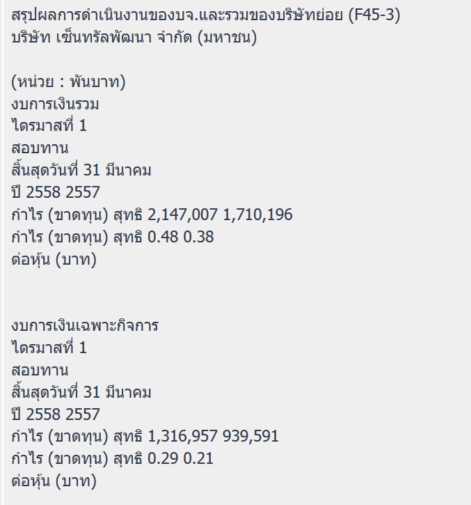 สรุปผลการดำเนินงานของบจ.และรวมของบริษัทย่อย (F45-3) บริษัท แอล.พี.เอ็น.ดีเวลลอปเมนท์ จำกัด (มหาชน) (หน่วย : พันบาท) งบการเงินรวม ไตรมาสที่ 1 สอบทาน สิ้นสุดวันที่ 31 มีนาคม ปี 2556 2555 กำไร