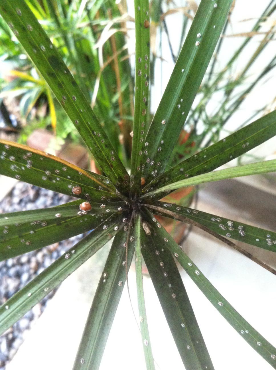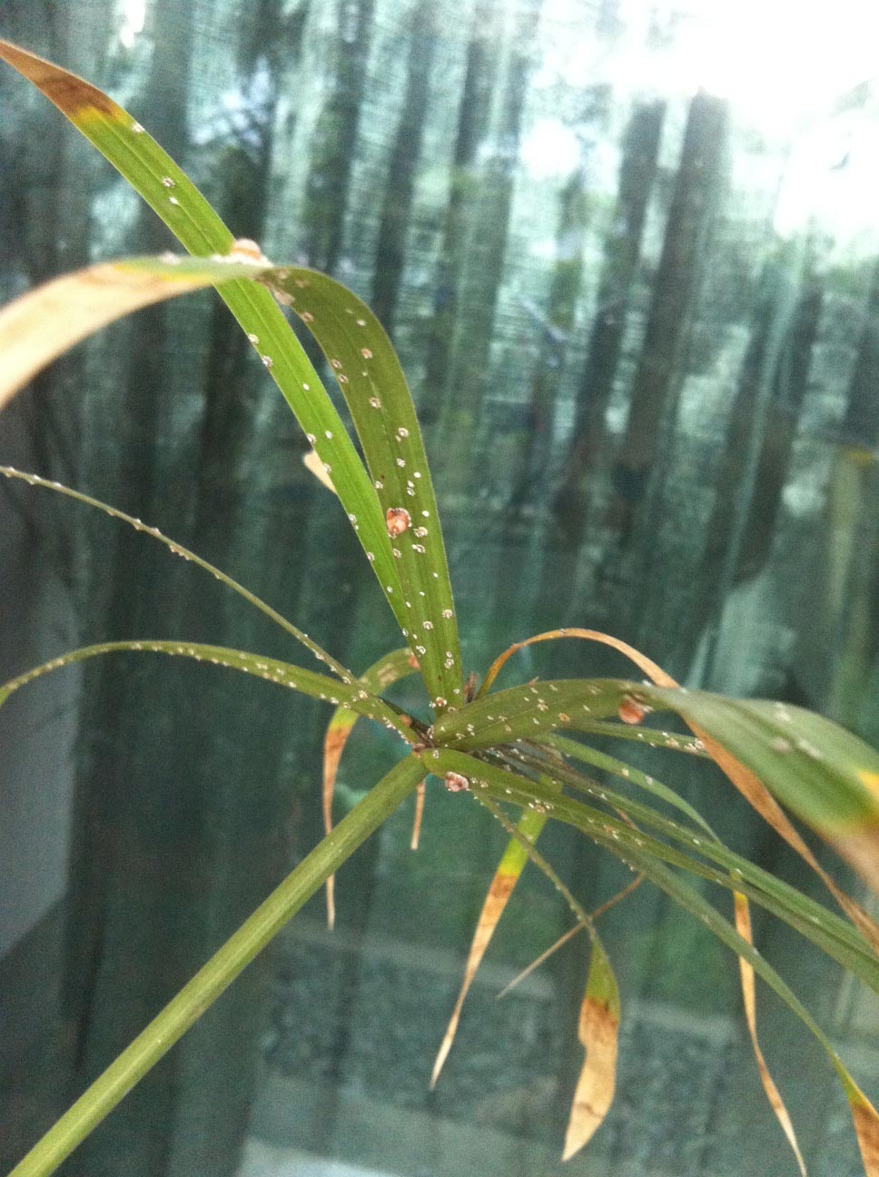 ต้นกกผมพึ่งสังเกตุว่าใบเริ่มแห้งไปเยอะทั้งๆ ที่น้ำก็เต็มกระถาง