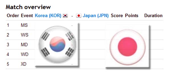 Court 1 [TV] : Korea (KOR) - Japan (JPN)