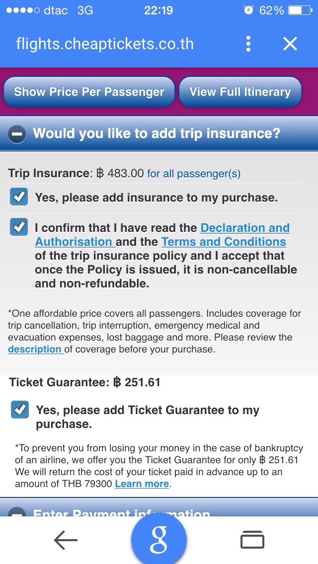 สอบถามประกันภัยตอนซื้อตั๋วเครื่องบินค่ะ