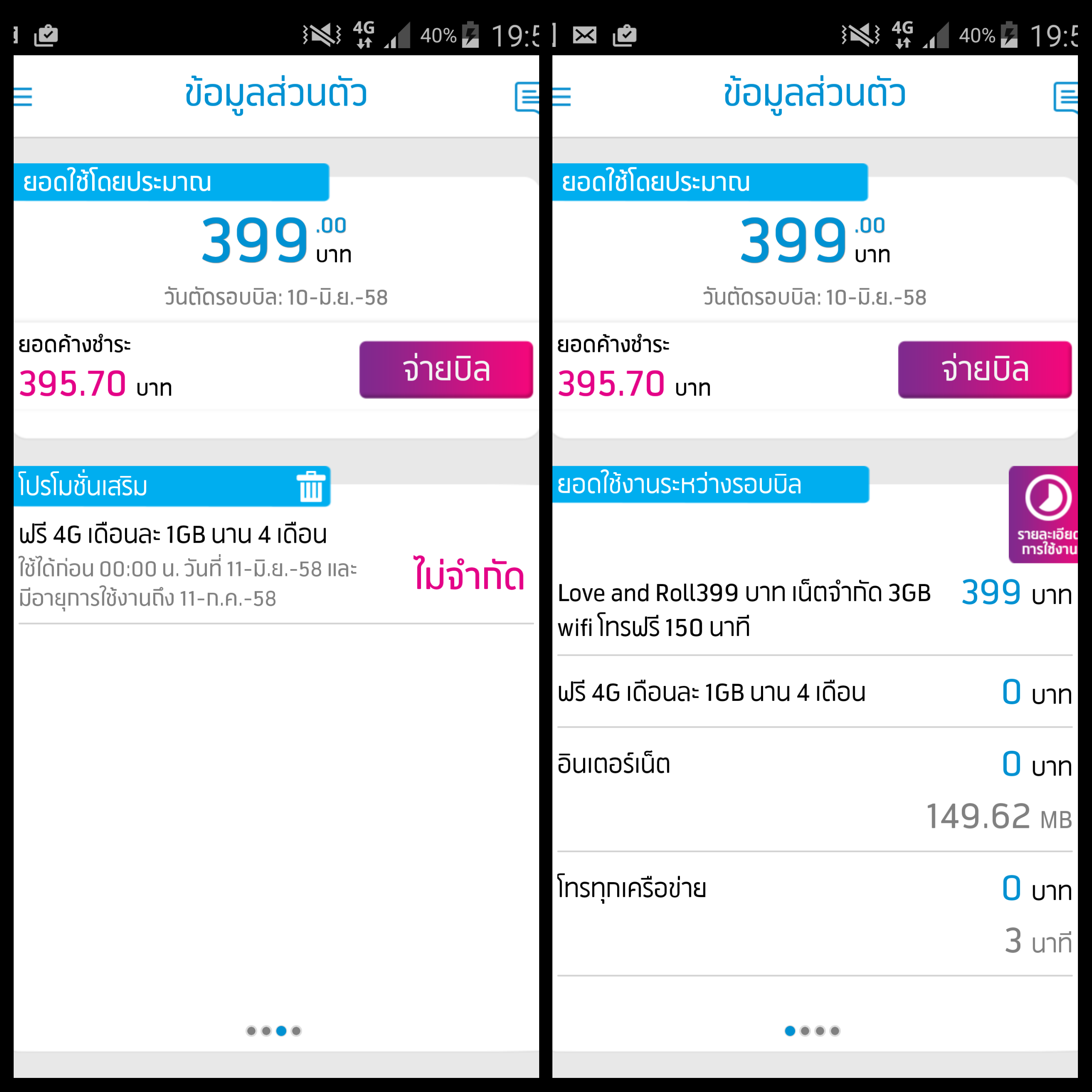 ผมได้ลองใช้แพ็คเกจเสริมอินเตอร์เน็ตหมายเลข *104*882*6253277# (4G จำกัดสูงสุด 1GB ใช้ได้ 24 ชั่วโมง) สมัครแพ็คเกจได้ครับ แต่แพ็คเกจที่สมัครไปไม่ได้ทำงานครับ ผมเพิ่งย้ายค่ายมาใช้ DTAC ได้สักพักแล้ว (ใช