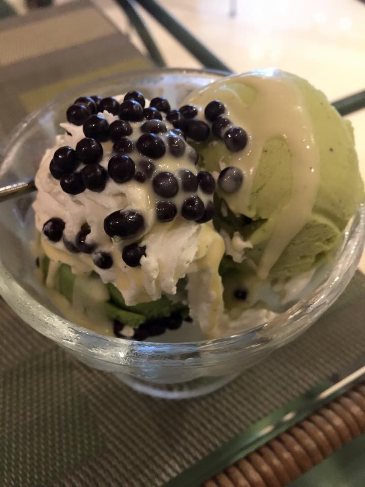 - แก้วนี้มีรสชาเขียว (อร่อยมากครับ มีกลิ่นชาเขียว ขมนิดๆ ) + รวมมิตร (รสชาติดี เหมือนไอติมกะทิที่ขายตามห้าง ใส่อัลมอนต์สไลด์กับวิปครีม