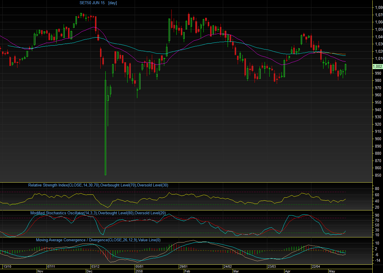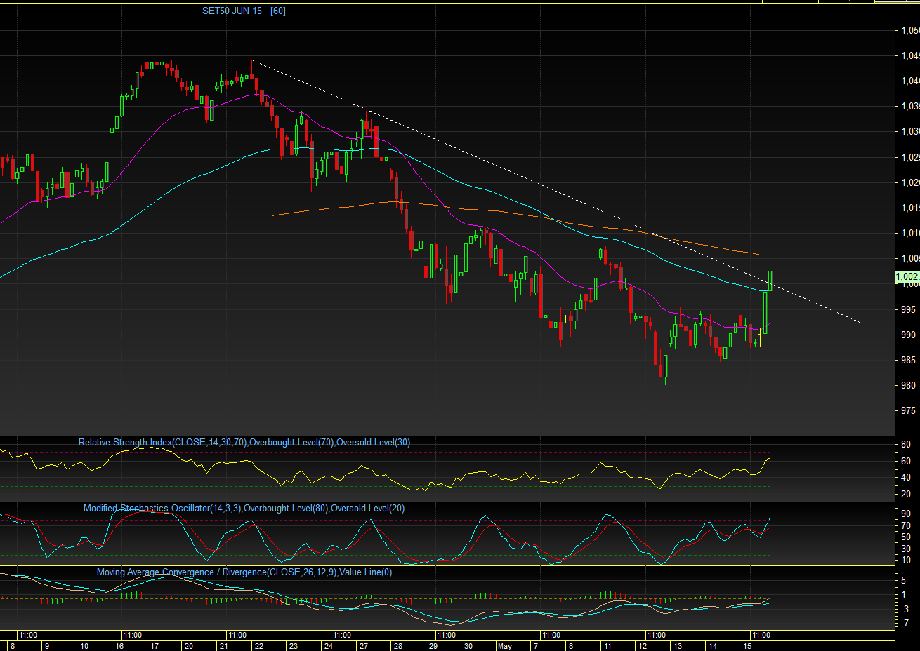 อย่างสวยงาม ซึ่งคาดว่าแนวโน้มวันนี้ ดัชนีน่าจะทะยานขึ้นไปได้ต่อ และ มีโอกาสกลับไปยืนเหนือ EMA25 วัน