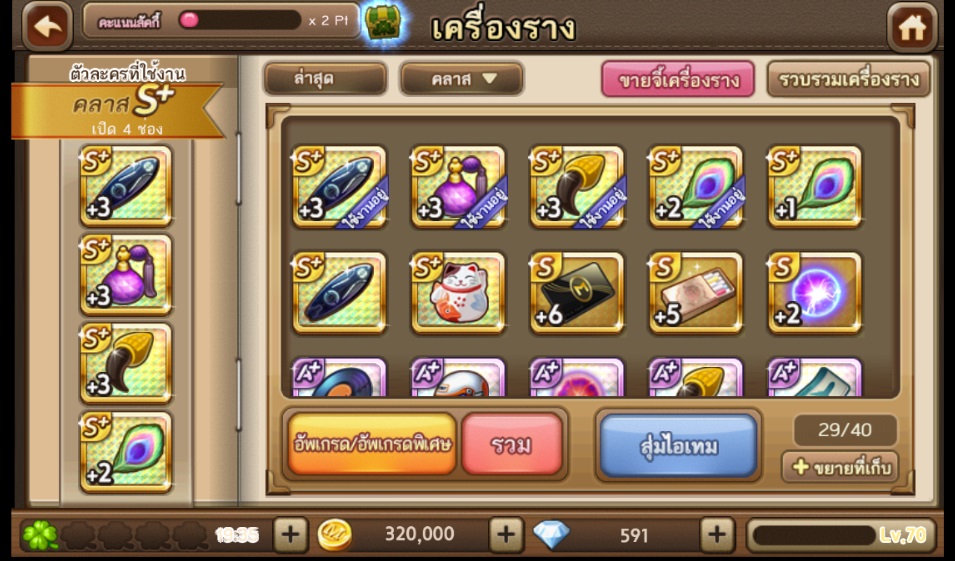 ปล.จึ้S+ที่ความสามารถรองห่วยผมไม่รวมใหม่ทำอันใหม่เลยดึกว่าจี้เก็บไว้อัพS+เต็มได้(ประทับใจเซิร์ฟฯมากรวมมาได้พลังcomboเลยโอกาสเที่ยวรอบโลกฟรี)