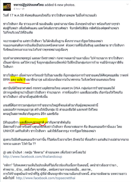 เสื้อเเดง นปช นี่มีเอี่ยวทุกเรื่องเลยนะครัช เลวจริมๆ เอาโรฮิงญามาฝึกอาวุธ ผมว่าต่อไปเเม้วน่าจะเป็นผู้อยู่เบื้องหลังกระบวนการค้าโรฮิงญาเเน่ๆ