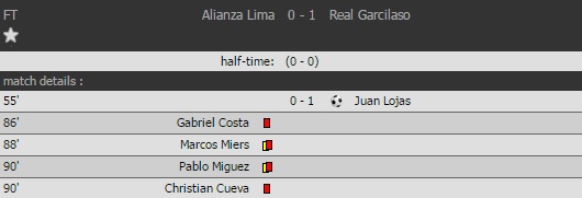 Ramon Blanco เปาเปรูแจกใบแดงเจ้าถิ่น 4 ใบรวดใน 5 นาที + 1 แดงให้ผจก.ทีมของ Alianza Lima ในเกมที่เปิดบ้านแพ้ Real Garcilaso ไปในเกมฟุตบอลลีกเปรู