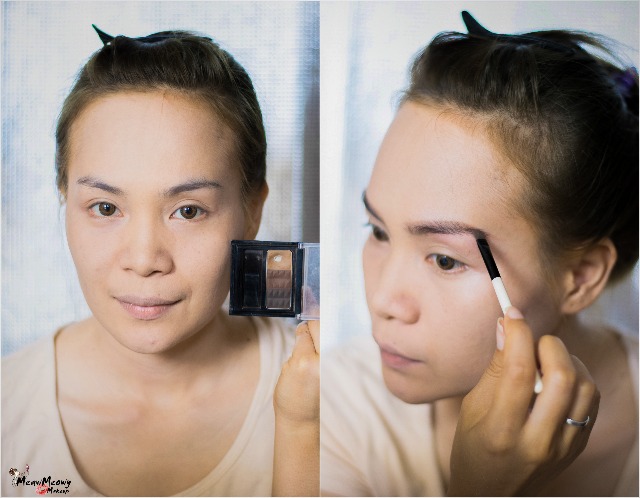 เขียนคิ้วด้วยพู่กันหัวตัดแบบไหนก็ได้ค่ะ เอาที่เรามีเลยนะคะ ใช้สีกลางของ IN2IT Waterproof eyebrow colour ER 01 มาระบายให้เต็มคิ้วค่ะ