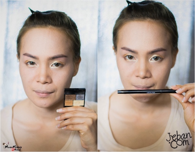 - และใช้ดินสอเขียนคิ้วสีน้ำตาลของ Beauty buffet มาเขียนขอบตาค่ะ ลากหางให้เลยตาเราไปนิดนึงนะคะ จะได้ดูหวานๆ