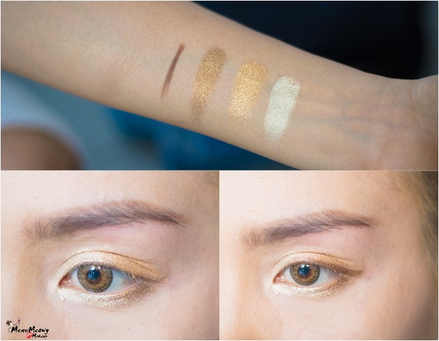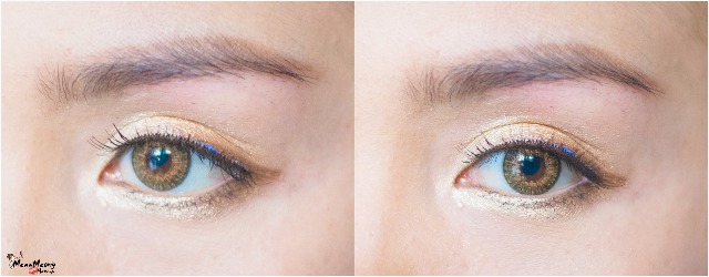 - จากนั้นใช้สีทองทารอยพับช่วงกลางตาไปจนถึงหางตาค่ะ