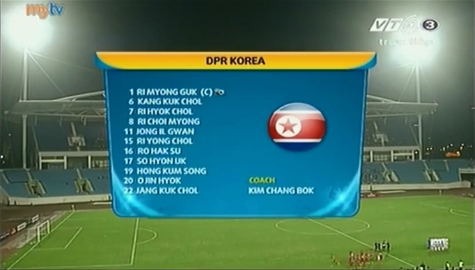 จากเว็บไซต์ เอเอฟซีอย่างเป็นทางการ เกาหลีเหนือ 1 GK AN TAE SONG 4 DF KANG IL NAM 5 DF JANG KUK CHOL (C) 6 DF RI IL JIN 8 MF RI UN CHOL 9 MF KIM YONG IL 10 MF KIM JU SONG 11 FW JANG OK CHOL