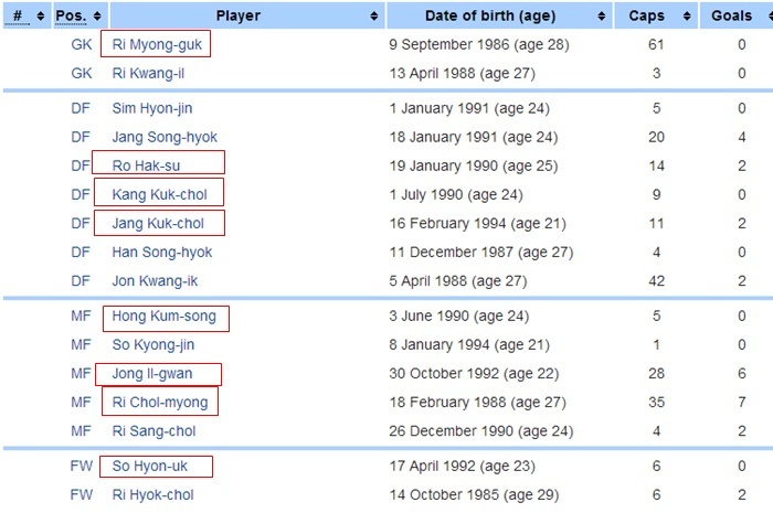 รายชื่อ ทีมชาติเกาหลีเหนือ ชุดใหญ่