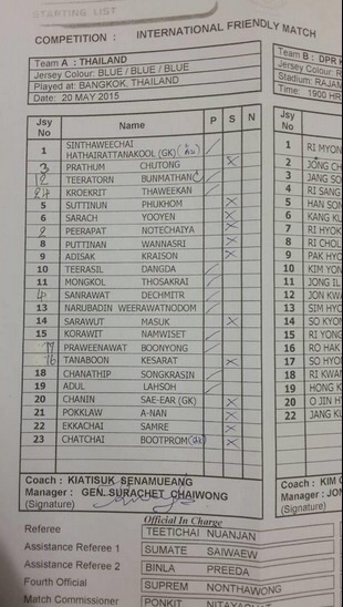 รายชื่อ อุ่นเครื่อง ไทย เกาหลีเหนือ 19.00 น