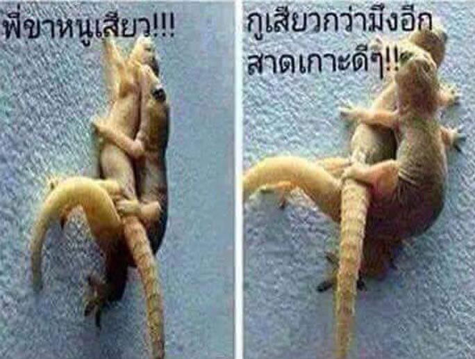 ไม่มีอะไร เจ้าตัวเมียมันแบกตัวผู้ขึ้นบ่า เพื่อพาไปส่งน่ะ เพราะเห็นตัวผู้บาดเจ็บอยู่