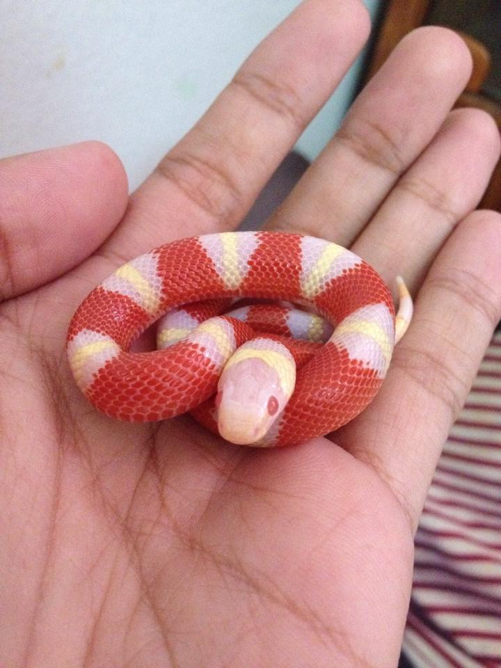 ตัวนี้เป็น Milk Snake ครับ สีสันเขาจะฉูดฉาดมากกว่า Corn Snake มันจึงสะดุดตาผมอย่างยิ่ง