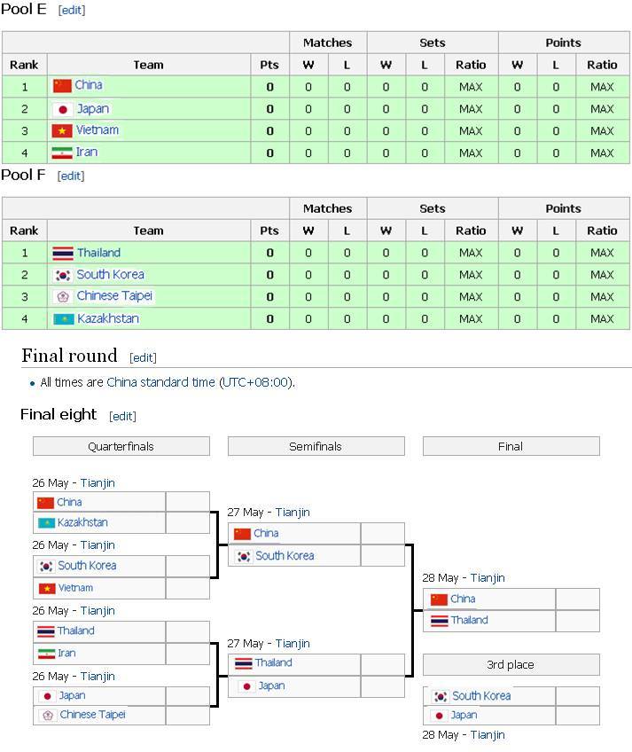 รอบ 8 ทีมสุดท้าย 2015 Asian Women's Volleyball Championship