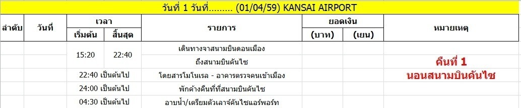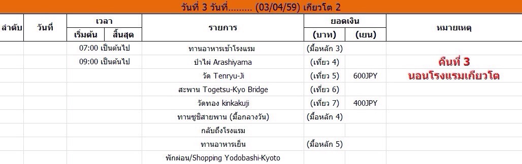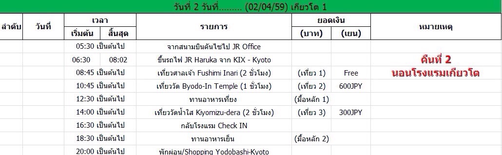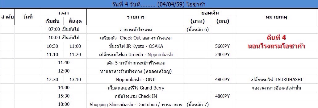 ทั้งจำนวนที่เที่ยวในแต่ล่ะวัน ทั้งลำดับ (ดูเหมือนจะศึกษาแล้วว่านั่งพาหนะอะไรใช่มั้ยครับ) ค่อนข้างโอเคมากไม่วกไปวนมาเลย ทำการบ้านมาค่อนข้างดีมากเลยครับ ส่วนเรื่องค่าใช้จ่ายไงก็ลองคำนวนดูอีกทีแล้วกันครับว่าจะเลือกใช้บัตรเติมเงินหรือใช้ Pass