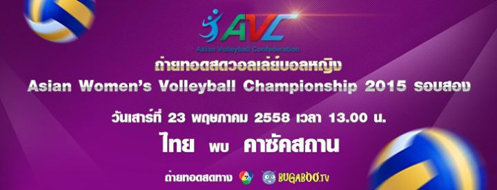 13.00 น. ช่อง 7 สี และ Bugaboo.tv ถ่ายทอดสดวอลเลย์บอลหญิงชิงแชมป์เอเชีย 2015 วันที่ 23 พฤษภาคม 2015 เวลา 13:00 น.