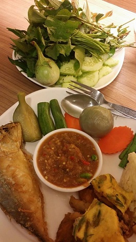 มื้อกลางวัน กินน้ำพริก ผัก กินผักเยอะมาก เรียกได้ว่ากินเป็นสวนกันเลยทีเดียว