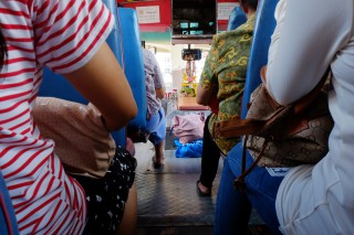 หลังจากอิ่มเอมกับบรรยากาศในยามเช้า นั่งทานอาหารเช้าไป มองวิวไปเพลินๆ ก็ถึงเวลาต้องออกเดินทางต่อแล้ว เรานั่งซาเล้งคันเดิม มารอรถเมล์ตรงที่เดิมที่ศาลาหน้าปากซอย รอได้ประมาณ 15 นาทีก็มีรถเมล์มาแล้วจ้า (รถเมล์มาทุกครึ่งชั่วโมงค่ะ)